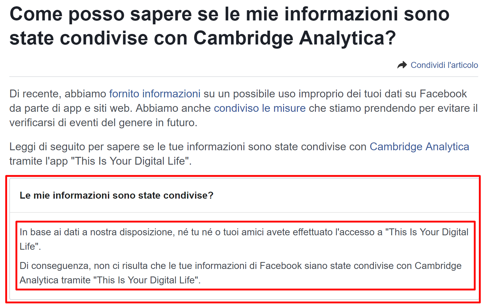 Come posso sapere se le mie informazioni sono state condivise con Cambridge Analytica?