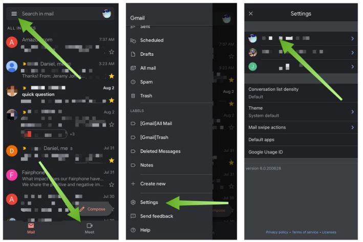 - Apri il menu laterale di Gmail e vai nelle impostazioni dell’app