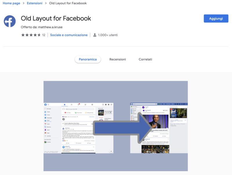 - scaricare questa estensione gratuita > Old Layout for Facebook e installarla seguendo le indicazioni a schermo