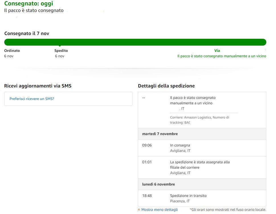 I pacchi Amazon Logistics sono identificabili poichè il tracking number inizia per BA ed è tracciabile direttamente sul sito di Amazon e su nessun altro sito esterno.