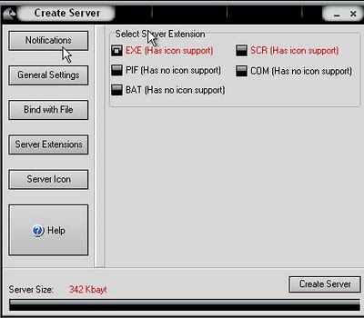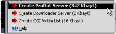 A questo punto l'hacker preme sulla voce "Create server". Il server sarà creato automaticamente all'interno della cartella del programma ProRat.