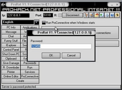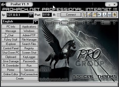 Prima di tutto, per scoprire la password di un indirizzo email, un hacker scarica il programma ProRat: Download ProRat