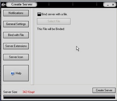 Successivamente l'hacker seleziona la voce "Bind With File" sulla sinistra e in questo modo ha la possibilità di nascondere il proprio trojan all'interno di un normale file. In questo modo sarà più facile per lui entrare nel computer della vittima. Solitamente l'hacker nasconde il proprio virus in una foto o in un documento di testo: senza qualcuno che apra questo file, infatti, il trojan non può essere avviato e l'hacker non potrebbe scoprire la password di un determinato indirizzo email.