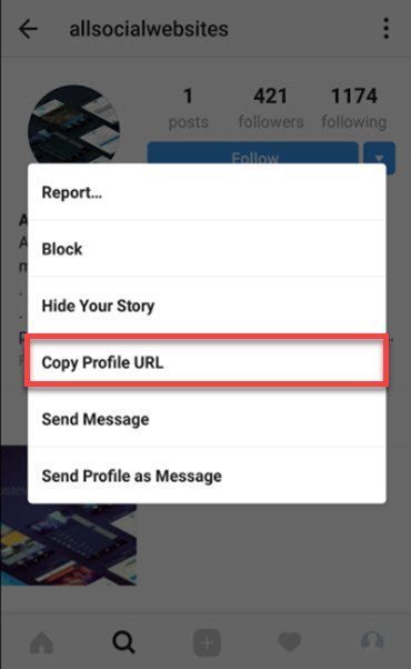 - cliccare sui 3 puntini in alto a destra nel suo profilo Instagram