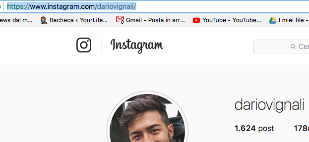 - direttamente dalla barra degli indirizzi del browser internet, copia il link al profilo dell'utente di cui vuoi vedere la foto profilo (ES: https://www.instagram.com/dariovignali/)