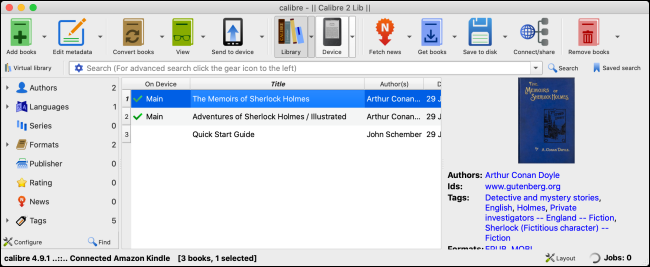 - Terminata la configurazione guidata, collega il tuo Kindle al computer tramite apposito cavo USB. La schermata di Calibre sarà esattamente come questa: