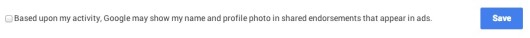Se anche voi volete impedire che Google usi le vostre foto e informazioni di Google+ nelle pubblicità di AdSense in giro per il web, vi basta deselezionare la relativa funzione che trovate in fondo a questa pagina e cliccare sul tasto Save.