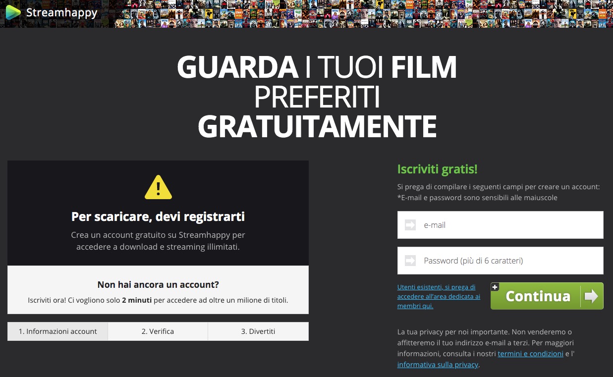 La cosa mi sembrava molto strana: per quale motivo un sito di streaming chiede la registrazione?