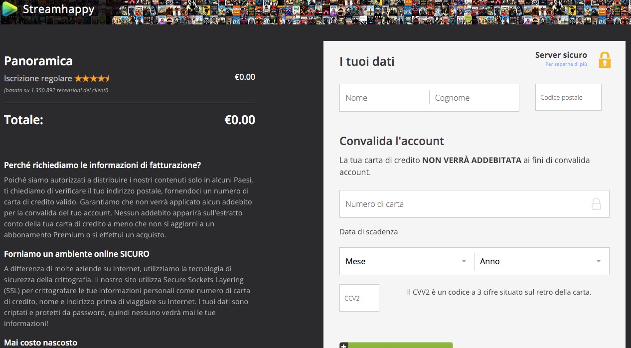 Per quale motivo dovevo fornire i dati della mia carta di credito ad una pagina pubblicitaria che si era aperta quando volevo vedere film e serie tv in streaming gratis?