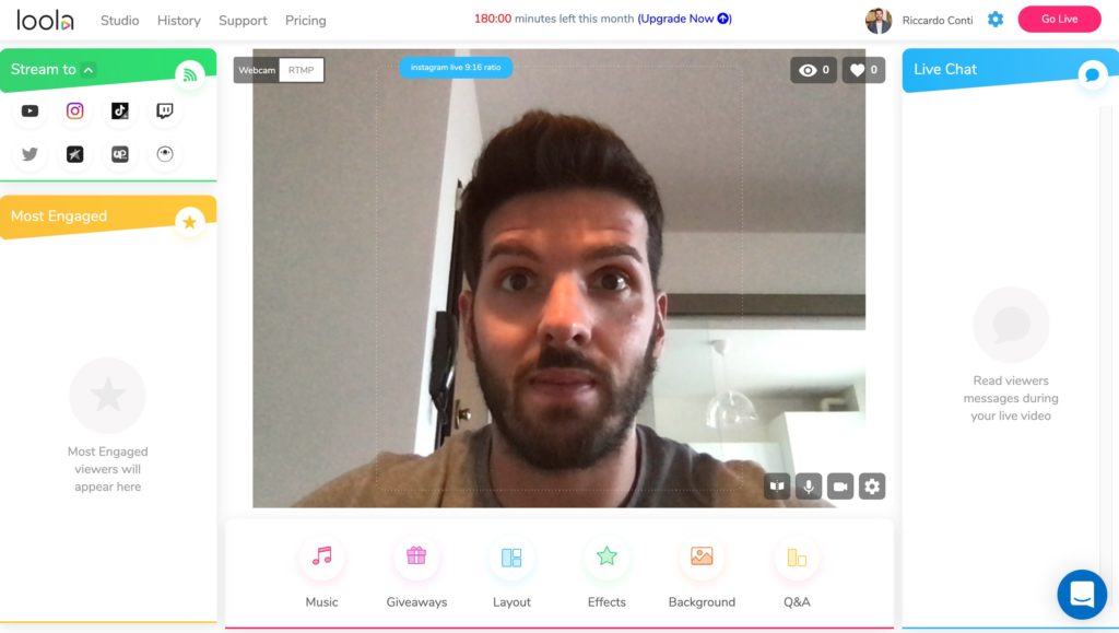 Durante lo streaming live, puoi vedere chi sono i tuoi spettatori più coinvolti sul lato sinistro dell'interfaccia di Loola.