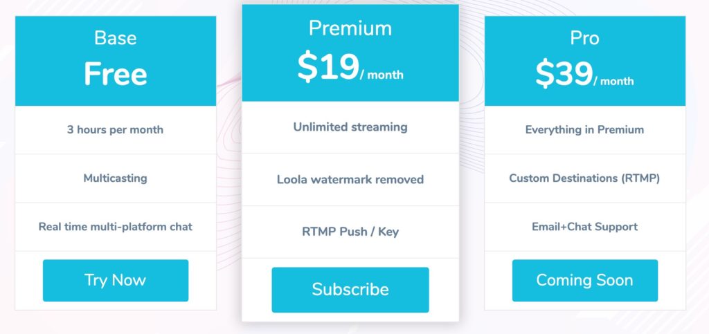 Il piano base, che permette di fare 3 ore di diretta al mese, è gratis per tutti.
