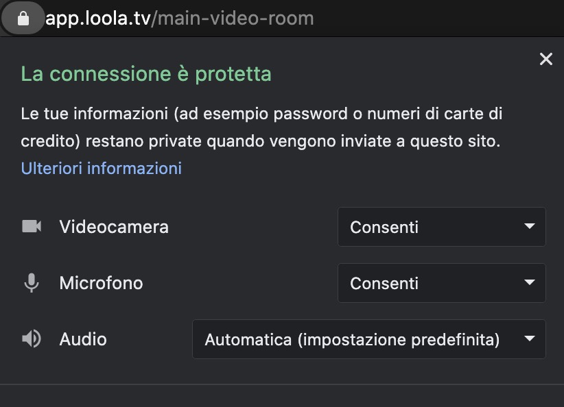 IMPORTANTE: assicurati che nel browser internet non ci siano adblocker o popup blocker che potrebbero impedire al programma di funzionare. Per fare funzionare microfono e webcam, inoltre, dovrai concedere i permessi richiesti dal sito, altrimenti non funzioneranno correttamente