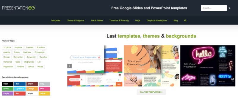 Un sito super aggiornato e molto moderno dove cercare e scaricare sfondi e modelli PowerPoint gratis. Assolutamente consigliato, soprattutto per le grafiche molto moderne presenti al suo interno.