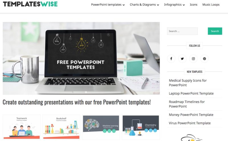 Un altro sito super aggiornato e molto completo dove trovare sfondi PowerPoint gratuitamente. Oltre a questi, troverai anche tantissimi modelli PowerPoint per creare infografiche facilmente e velocemente. Un portale assolutamente da consultare per la quantità e qualità del materiale disponibile.