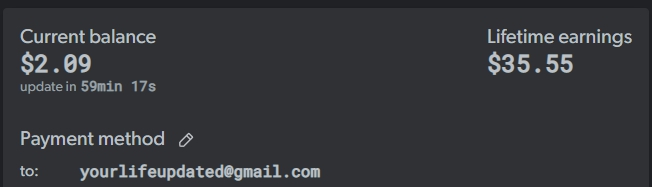 Prima di tutto segnalo che si può richiedere un pagamento al raggiungimento dei 5 dollari.