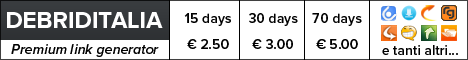 Clicca QUI per acquistare un abbonamento (anche di pochi giorni) a DebridItalia a prezzi SUPER! Potrai scaricare da tutti i principali siti di file hosting pagando un prezzo irrisorio, senza limiti di velocità e di download. Un’offerta imperdibile!