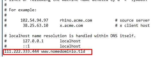 - Ora che avete aperto il file host potete modificarlo come un normale file di testo e procedere alla modifica che descriveremo successivamente.
