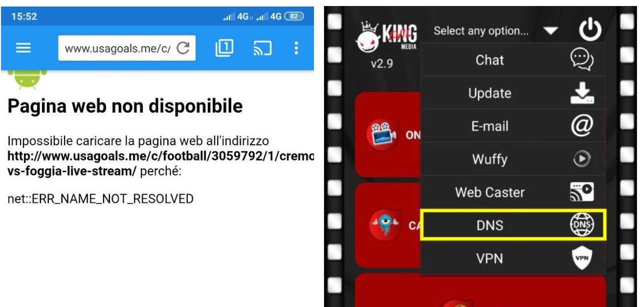 Evil King Media però ha integrato la possibilità del cambio DNS, che va a sistemare il problema dell'apertura dei link Web Caster ed EK Sport che sono dunque derivati da un blocco regionale e cambiando i DNS potrete nuovamente accedere a tutti i link bloccati.