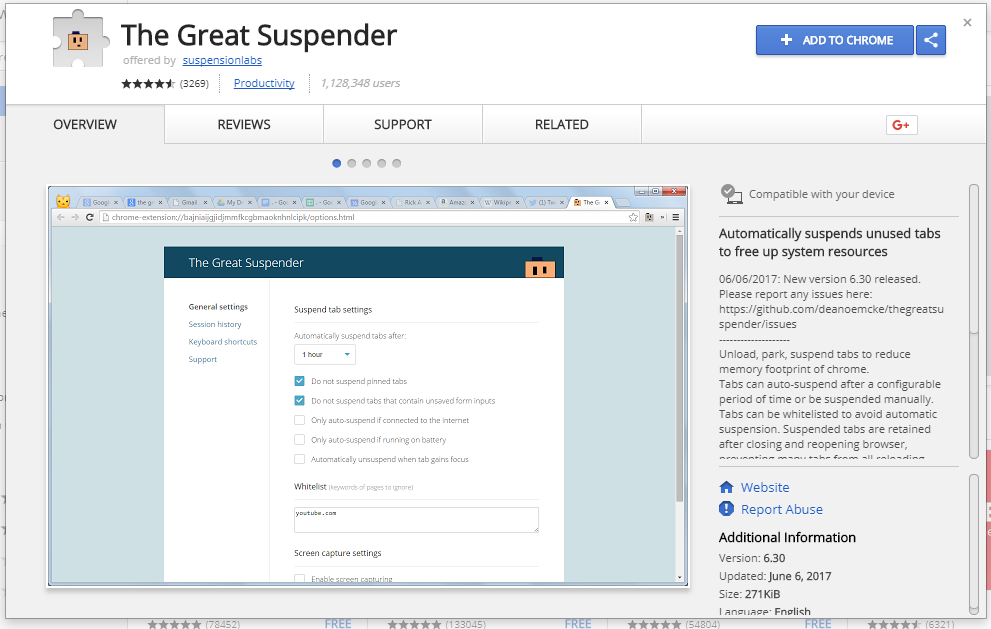 L'estensione che hai risolto quasi completamente il problema dell'eccessivo consumo di RAM da parte di Chrome si chiama The Great Suspender e, visto che mi ha soddisfatto alla grande, voglio parlartene in modo approfondito.