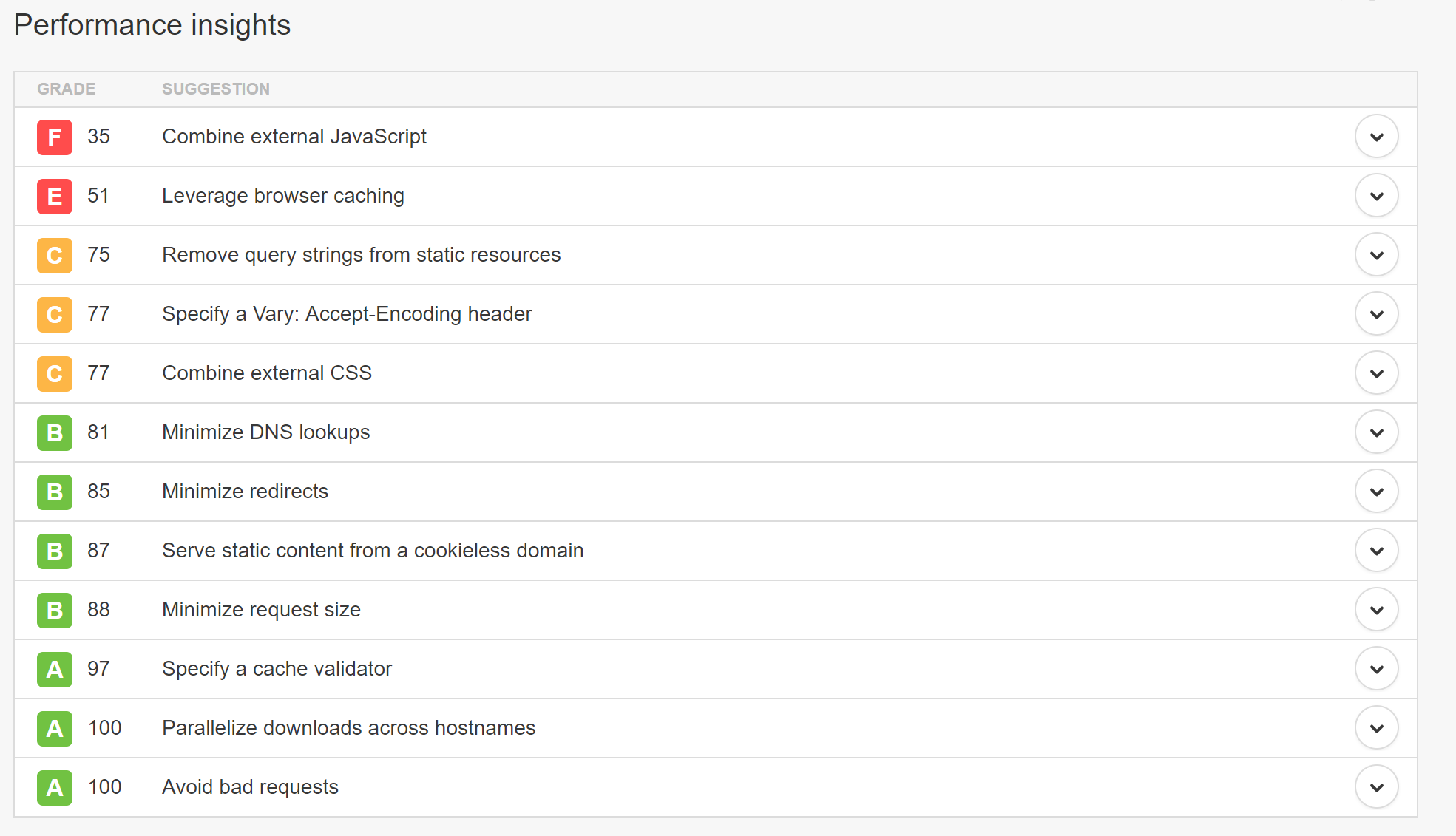 Andiamo a vedere qualche esempio di siti web lenti e scopriremo quali soluzioni adottare per velocizzarlo. Di seguito una schermata del report di Pingdom di un sito web ben ottimizzato ma con troppi contenuti che puntano a siti web esterni: