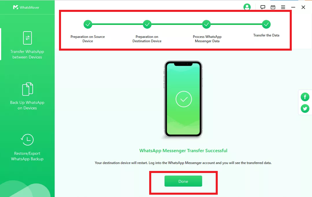 La prima soluzione consiste nell’usare un software professionale per il trasferimento di WhatsApp: WooTechy WhatsMover. Può trasferire direttamente il tuo WhatsApp da Android a iPhone attraverso alcuni passaggi.