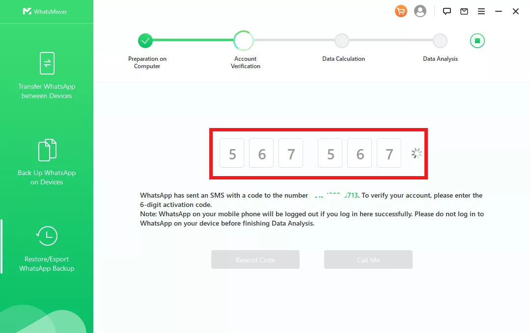 1o Passaggio: Reinstalla WhatsApp sul tuo telefono Android, accedi con lo stesso numero di telefono e verifica l'account.