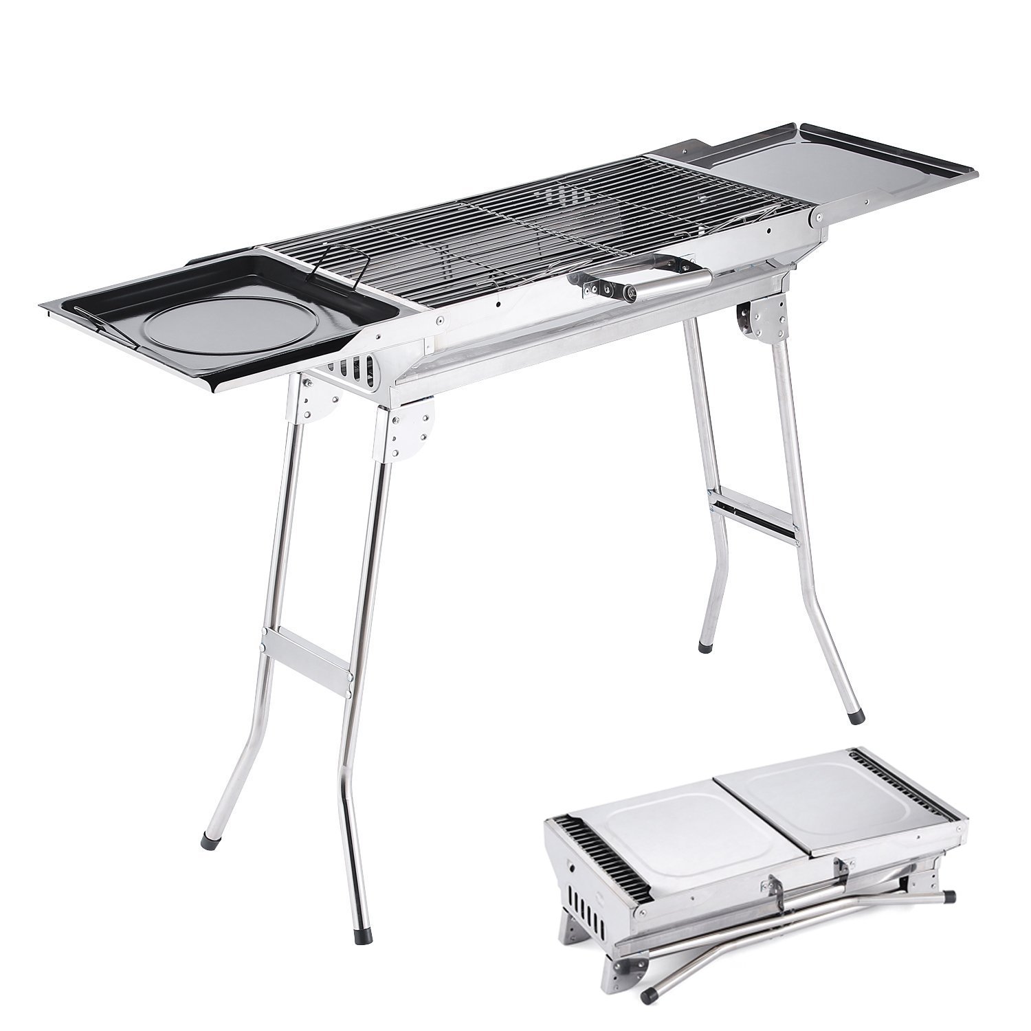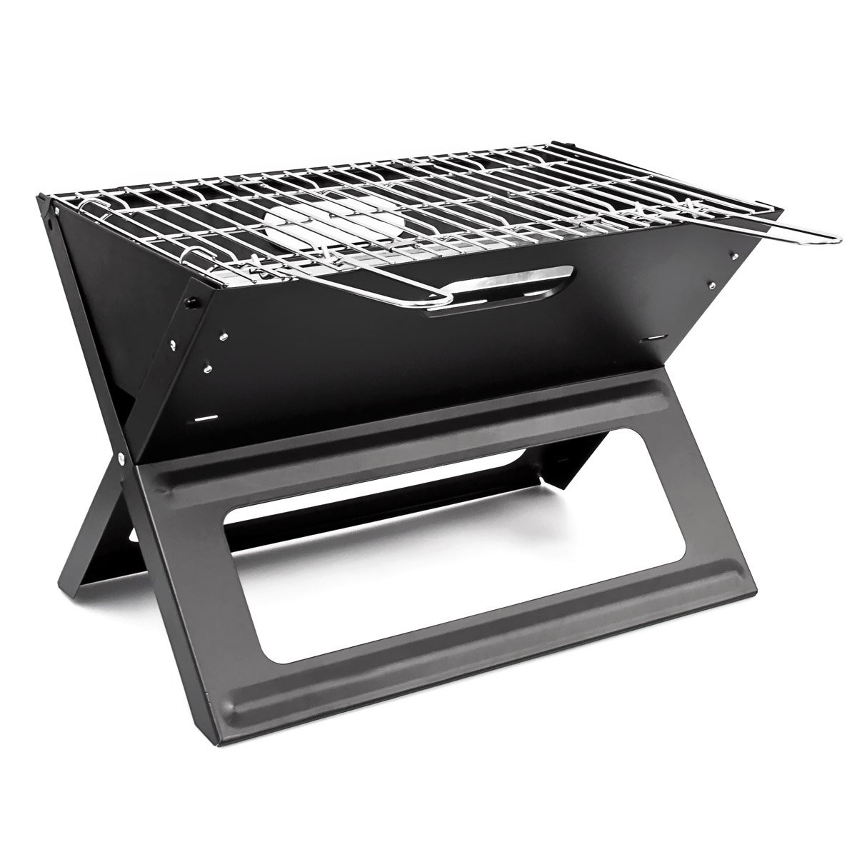 E' forse il più piccolo barbecue disponibile, è pieghevole e potete appoggiarlo sul tavolo senza problemi. In alluminio, ha un manico per trasportarlo facilmente, ha un coperchio con ventilazione, e gli utensili possono essere conservati nella griglia stessa quando non lo usate. Il numero uno in portabilità e poi costa circa 30 euro.