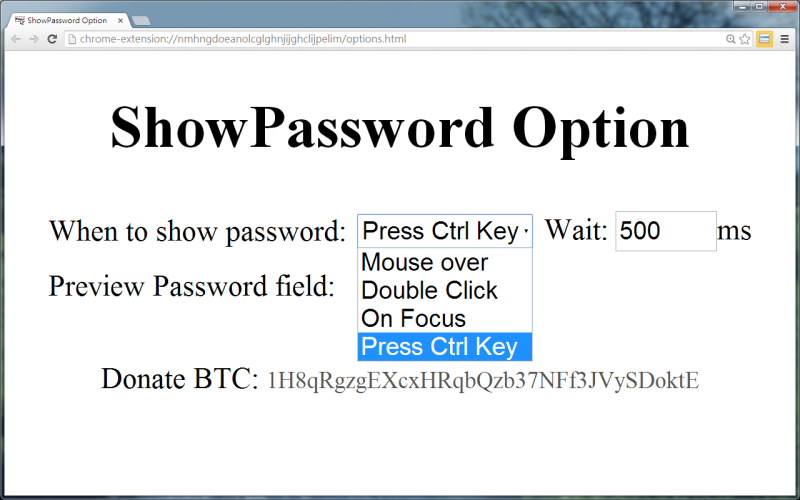 - Vuoi un altro metodo? Apri le opzioni dell’estensione e scegli se mostrare la password con il doppio click, alla messa a fuoco del campo oppure premendo Ctrl