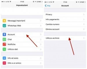 Per analizzare le statistiche di utilizzo di WhatsApp dovremo sfruttare la funzione Utilizzo Archivio.