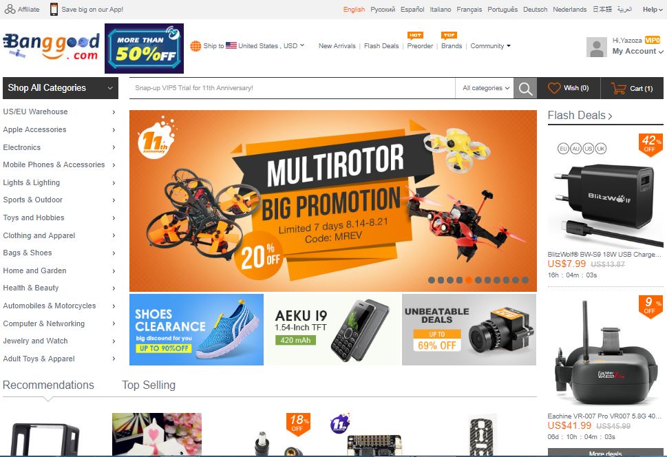 In pratica immaginate il sito Banggood come una sorta di Amazon cinese o qualcosa di simile, con la differenza che i prezzi sono veramente bassissimi e super convenienti per qualsiasi tipo di prodotto. Su Banggood potete comprare praticamente di tutto: sarà il vostro centro commerciale online per comprare prodotti a prezzi bassi e scontati.