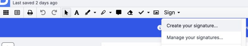 - Nella barra in alto del programma, clicca su SIGN > CREATE YOUR SIGNATURE