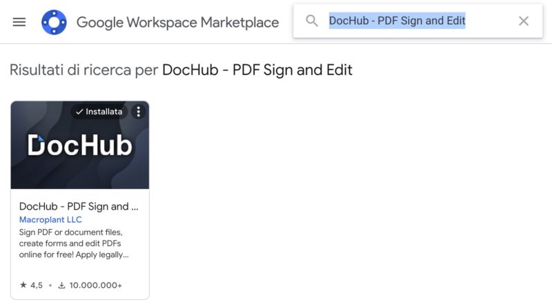 - Nella finestra che compare, cerca "DocHub - PDF Sign and Edit"