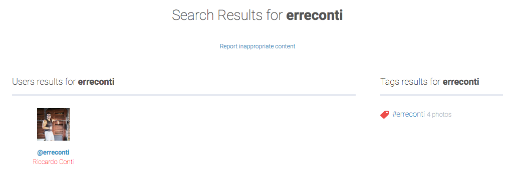 - Digita Invio per fare iniziare la ricerca. La ricerca avviene per nome utente e per tag