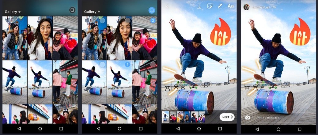 In maniera simile a quanto già disponibile con i post classici, anche nelle Storie sarà presente una nuova icona nell'angolo in alto a destra che consente di selezionare fino a 10 foto o video presenti nella galleria.
