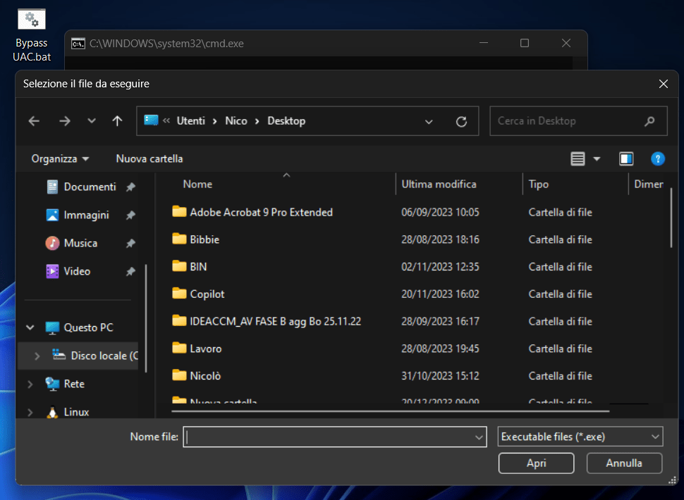 Una volta scaricato, apri “Bypass UAC.bat”.
