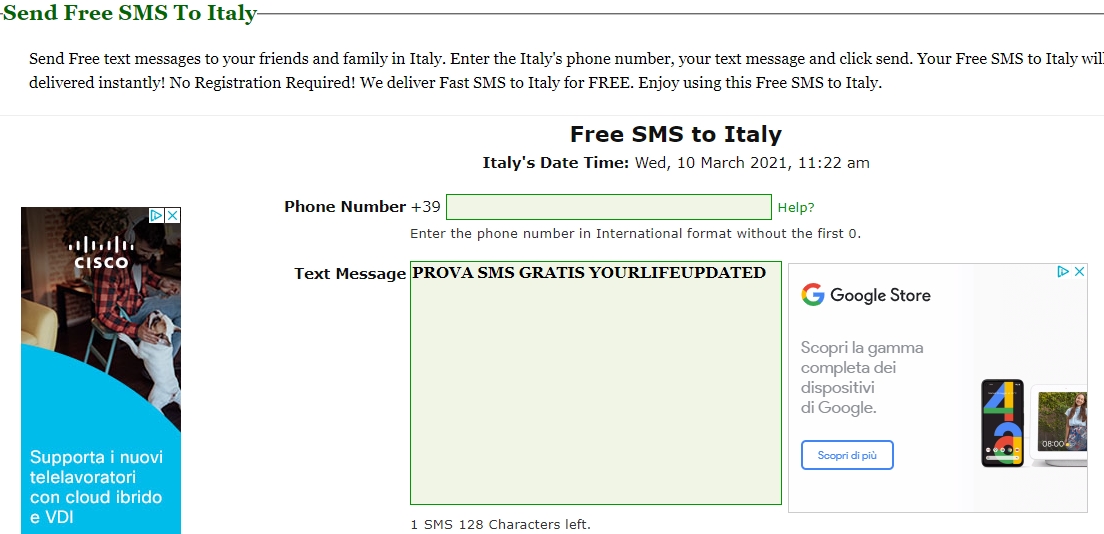 - Vai su questo sito: https://www.afreesms.com/intl/italy