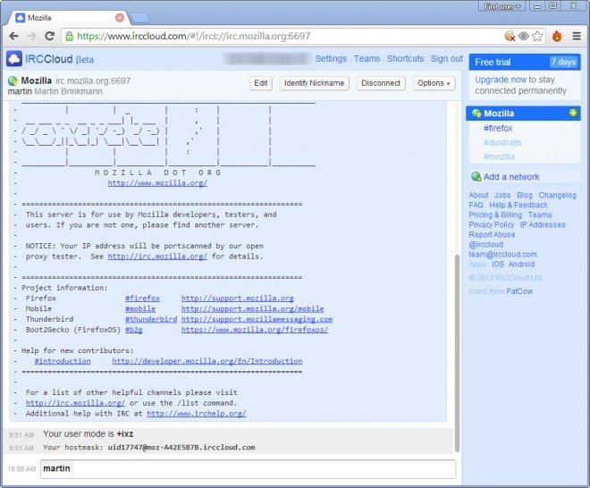 Ciò che lo distingue dalle soluzioni da PC come MIRC è il fatto che si rimanere connessi ai canali anche se si spegne il computer o si chiudere l'applicazone sul tuo dispositivo. Quindi, tutto ciò che sta accadendo è registrato per voi. Il client web-based è veramente facile da usare. Dopo aver impostato l'account, è possibile connettersi a una rete selezionandola da una lista o inserendo direttamente il nome dell'host.