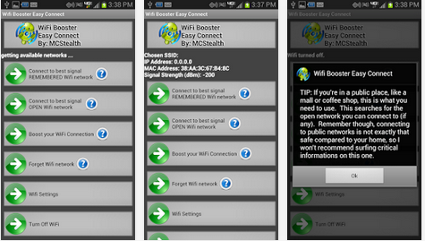 Wifi Booster Easy Connect è molto semplice e senza fronzoli infatti non fa altro che cercare qual'è la rete WiFi con segnale più forte e connettere il vostro device ad essa.