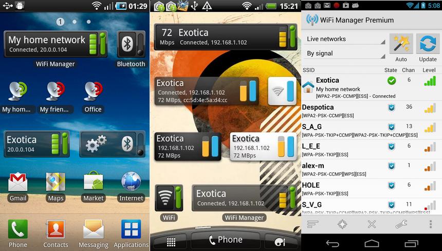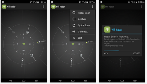 Questa applicazione è disponibile gratuitamente su Google Play Store e consente di trovare, collegare, gestire le reti WiFi. Esso mostra un radar in formato grafico per aiutare a trovare il posto vicino per ottenere il segnale WiFi più forte. È possibile aggiungere le reti WiFi preferite come un widget su schermata home per la connessione alle reti WiFi preferite.