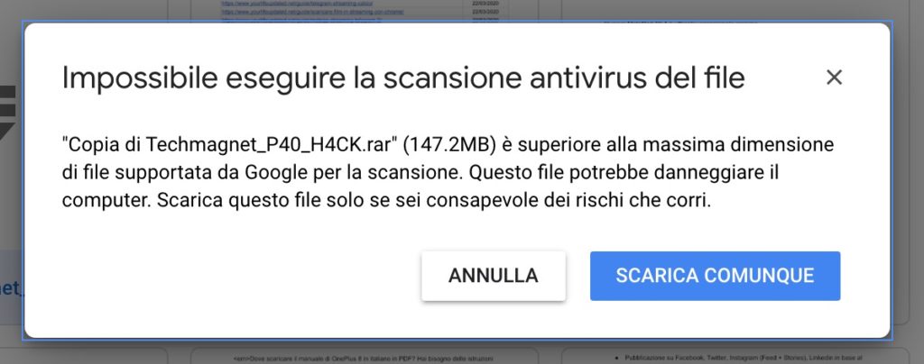 Non riesco a scaricare file da Google Drive: COME RISOLVERE