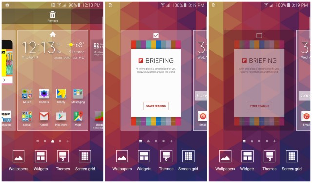 Sul Galaxy S5 c'era una sezione speciale della schermata iniziale chiamata "La mia rivista". Questa sezione è ancora presente sul Galaxy S6, ma è stato rinominato "Briefing". Fondamentalmente aggrega solo notizie da un certo numero di diversi Fonti. Potete rimuoverlo così: