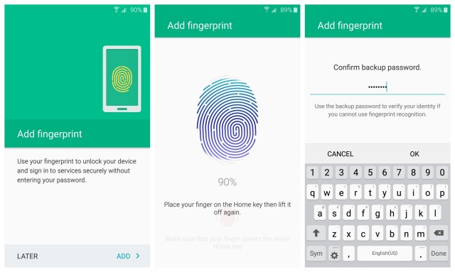 Notare che lo scanner impronte digitali può essere utilizzato anche per ottenere l'accesso ad applicazioni supportate, come Paypal. Sarà inoltre presto possibile utilizzarla per l'accesso a siti web sul browser web del telefono, e pagando per gli acquisti con Samsung Pay.
