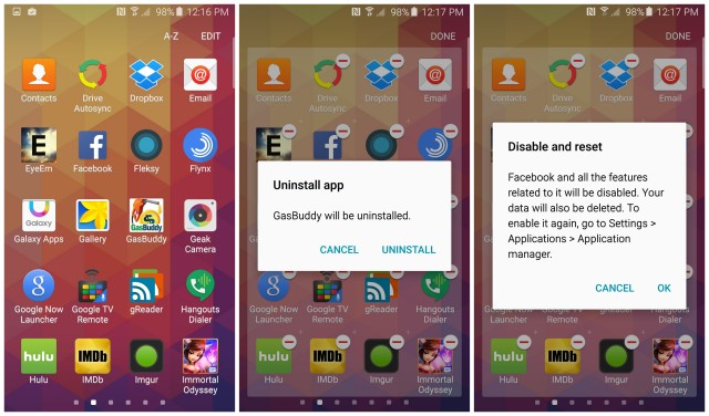 Alcune applicazioni di sistema possono essere disinstallate e altre possono essere soltanto disabilitate. Un app disabilitata non apparirà tra app e non sarà in grado di funzionare in background ma ovviamente continuerà ancora ad occupare memoria sul dispositivo.