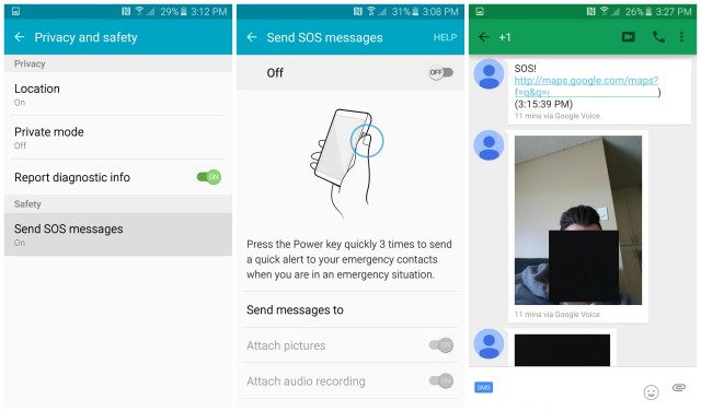 Samsung SOS invia un messaggio preimpostato per tutti i contatti che si desidera quando si preme rapidamente il pulsante di accensione per 3 volte consecutive.