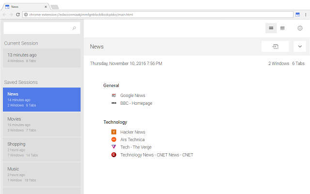 Interessante estensione per gestire la sessione su Chrome. Permette di salvare le tab e le schede aperte in modo da riaprirle in un secondo momento. Nello stesso tempo permette di evitare che queste schede vengano chiuse e "perse" o dimenticate. Utile anche per riaprire le schede di Chrome che si sono chiuse improvvisamente a causa di un crash del browser o del sistema. Utile anche la possibilità di organizzare le tab in topic. Utilissima la ricerca integrata, che permette di cercare e aprire direttamente le schede aperte, sempre in ottica di risparmio di memoria RAM.
