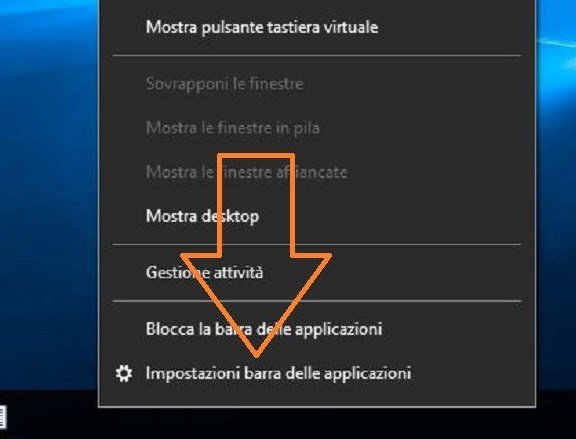 Iniziamo facendo un click con il pulsante destro del mouse su una parte vuota della barra della applicazioni e cliccare sulla voce Impostazioni barra delle applicazioni come nell'immagine seguente.