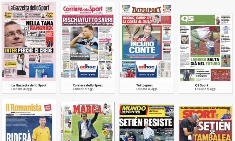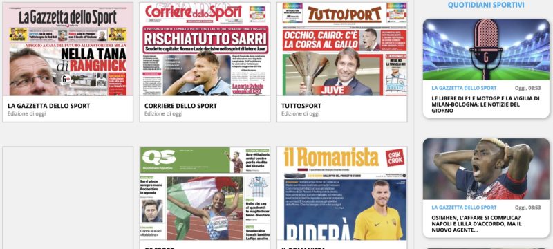 QUI, invece, troverai un sito che ti permette di accedere in un click alle pagine web delle principali testate giornalistiche italiane, comprese ovviamente quelle sportive.