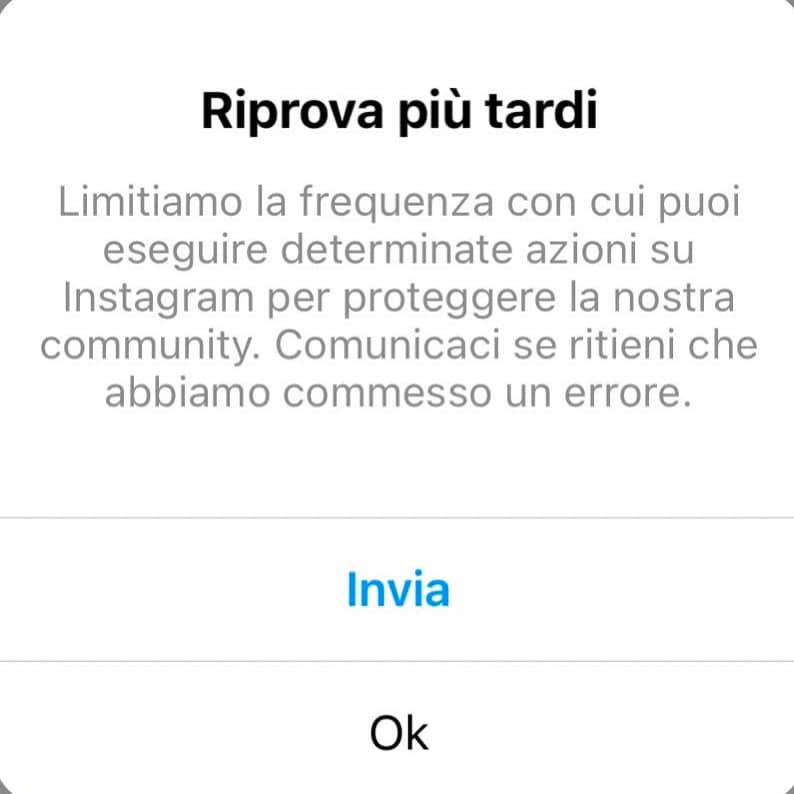 Riprova più tardi: limitiamo la frequenza con cui puoi eseguire determinate azioni su Instagram per proteggere la nostra Community. Comunicaci se ritieni che abbiamo commesso un errore.