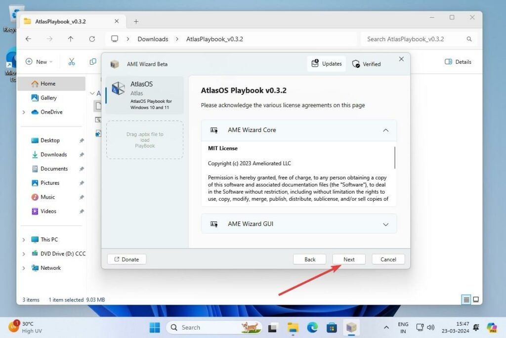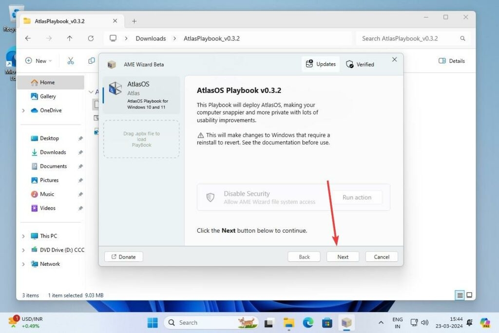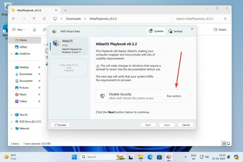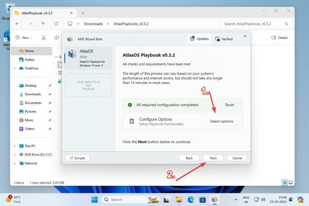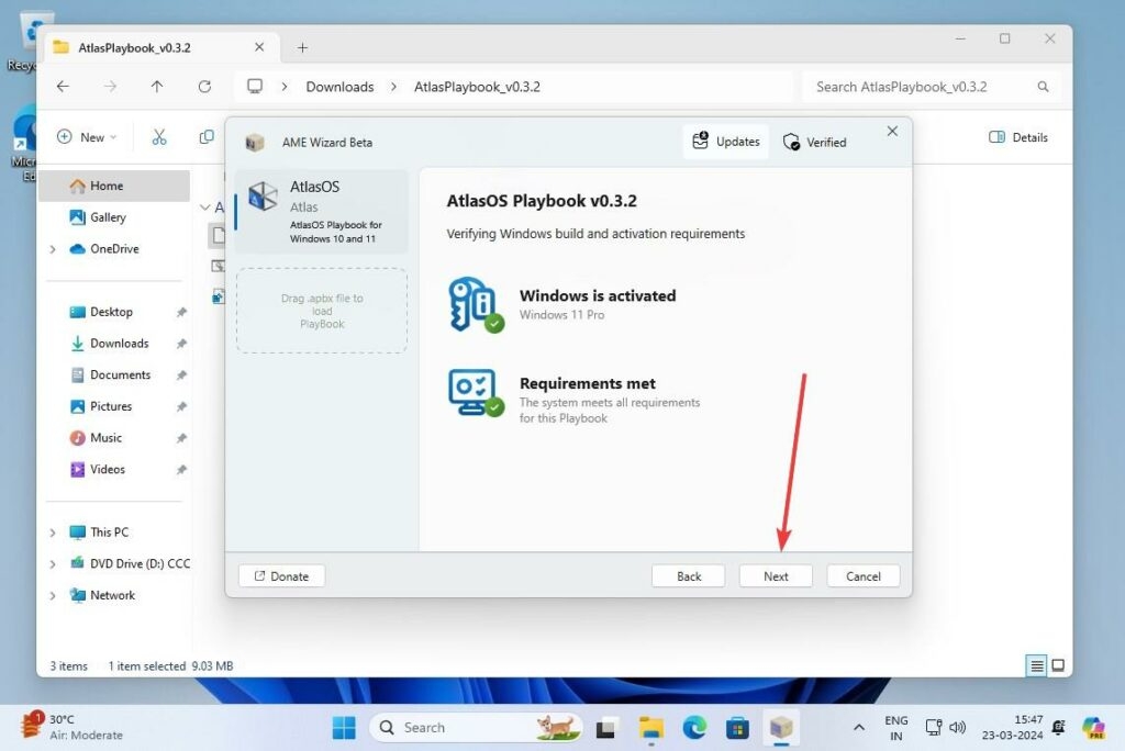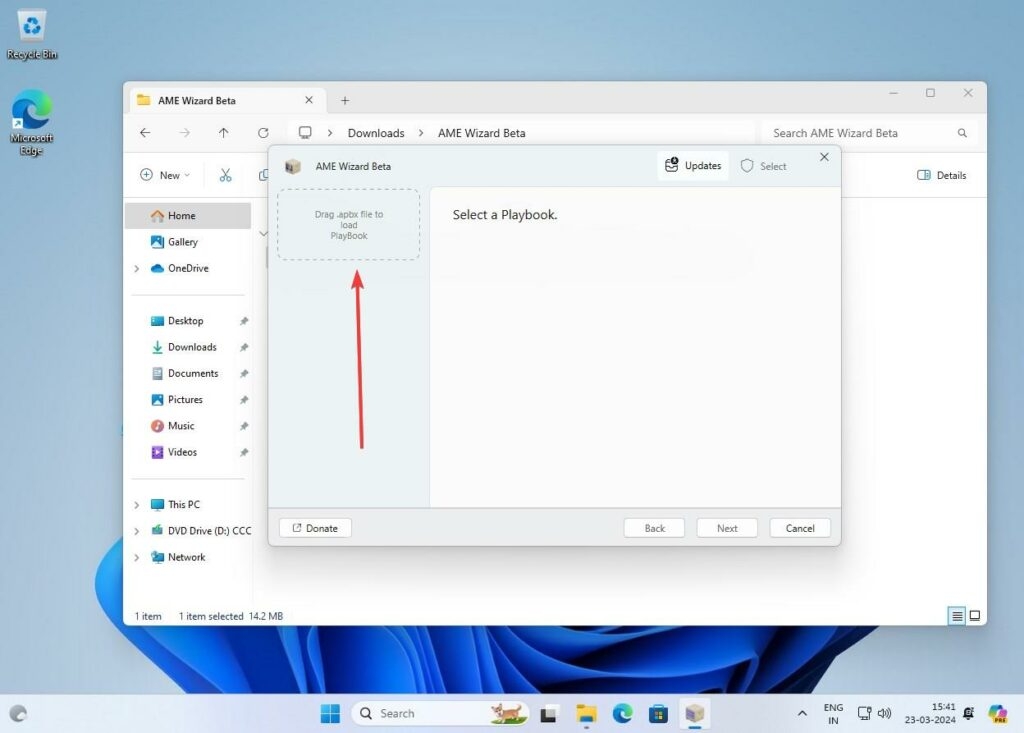 - Trascina il file Atlas OS Playbook file (.apbx) nell'AWE Wizard