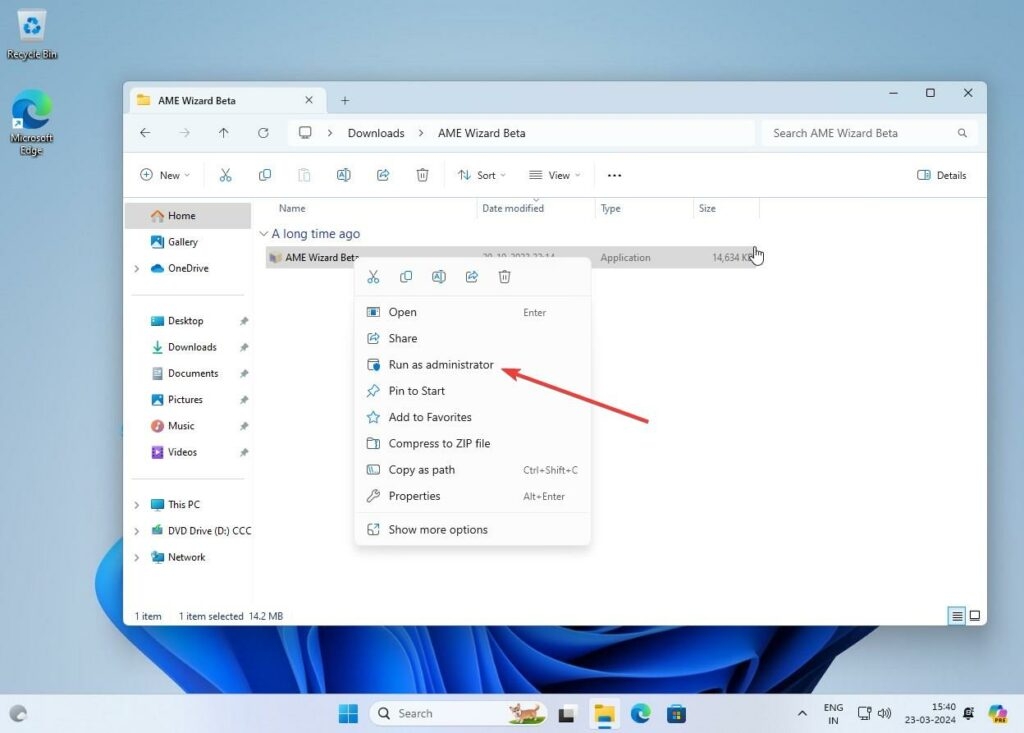 - Fatto questo, avvia AME Wizard Beta come amministratore (cliccaci sopra col destro del mouse > avvia come amministratore)